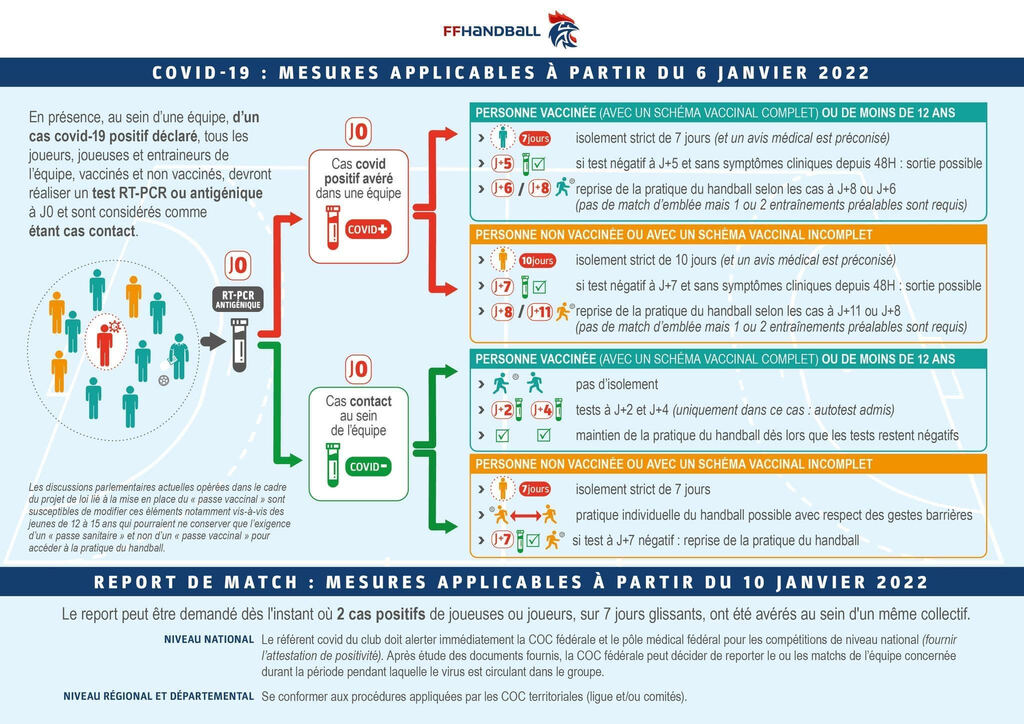 Voici le protocole de la Fédération Française de Handball à suivre si un cas de covid est detecté dans une équipe de handball.