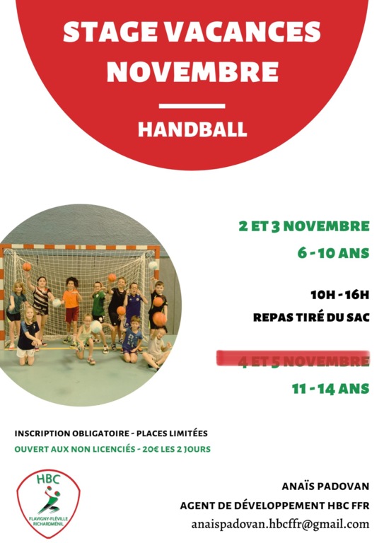 Stage pour les 6-14 ans les 2 et 3 Novembre 2021.