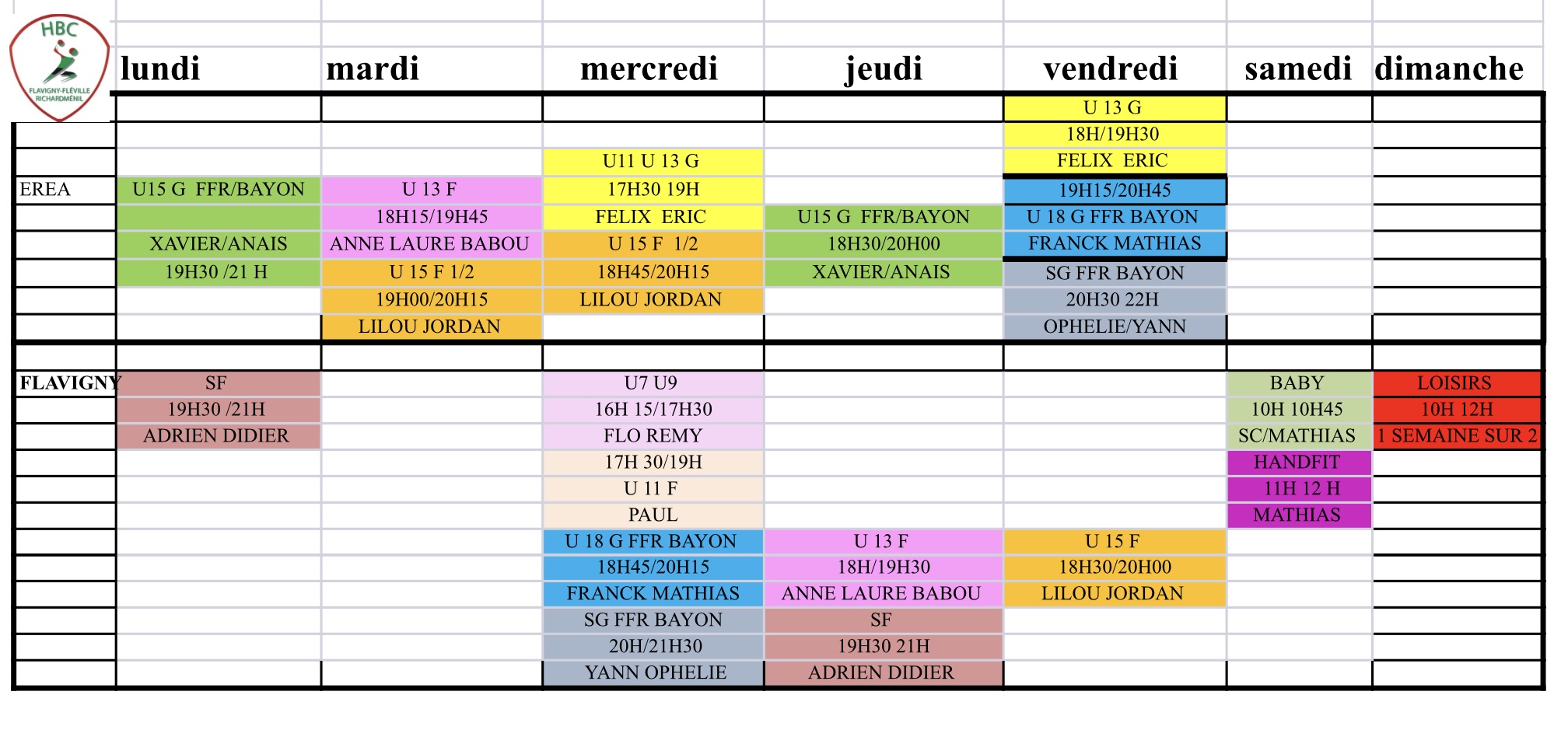Vous souhaitez connaitre votre créneau d'entrainement et la salle, c'est :